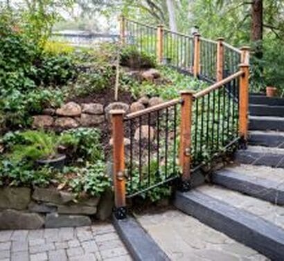This Berkeley property had overgrown vines, concaving fences, rotted deck, dead lawn, broken concrete, and poor drainage. After removing about 30 yards of soil from this lot, we were able to begin leveling and sculpting the landscape. We installed new concrete pathways, synthetic lawn, custom swing and arbor, Thermory wood decking with metal railings, paver patio with masonry stone wall seating, and stone mosaic water feature with stainless steel wire to match. Many elements tied together nicely in this modern Berkeley backyard.