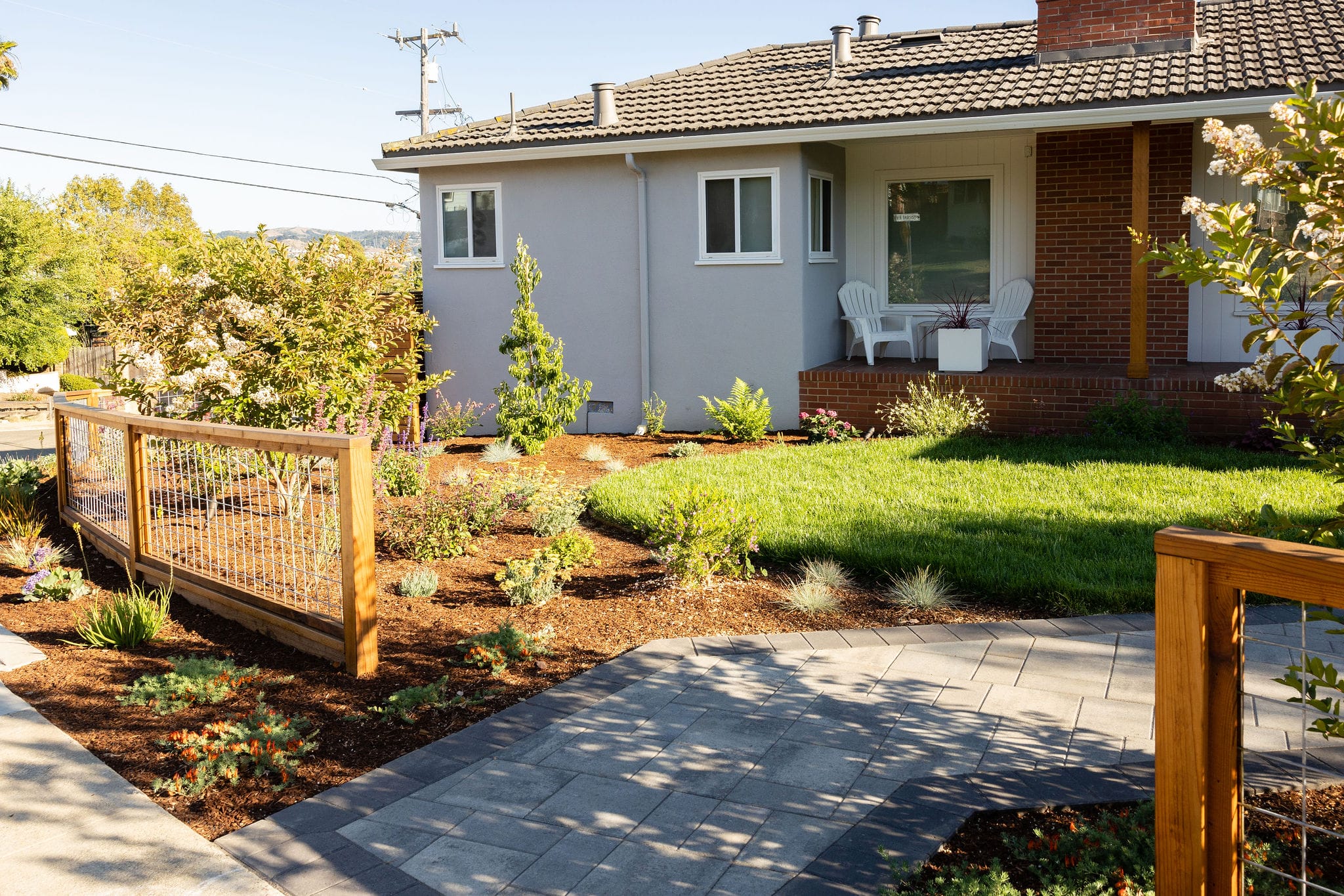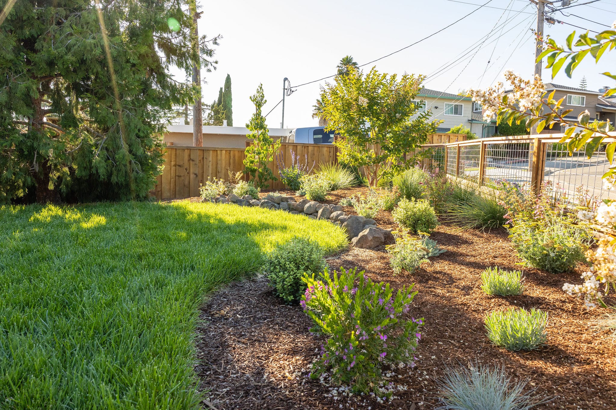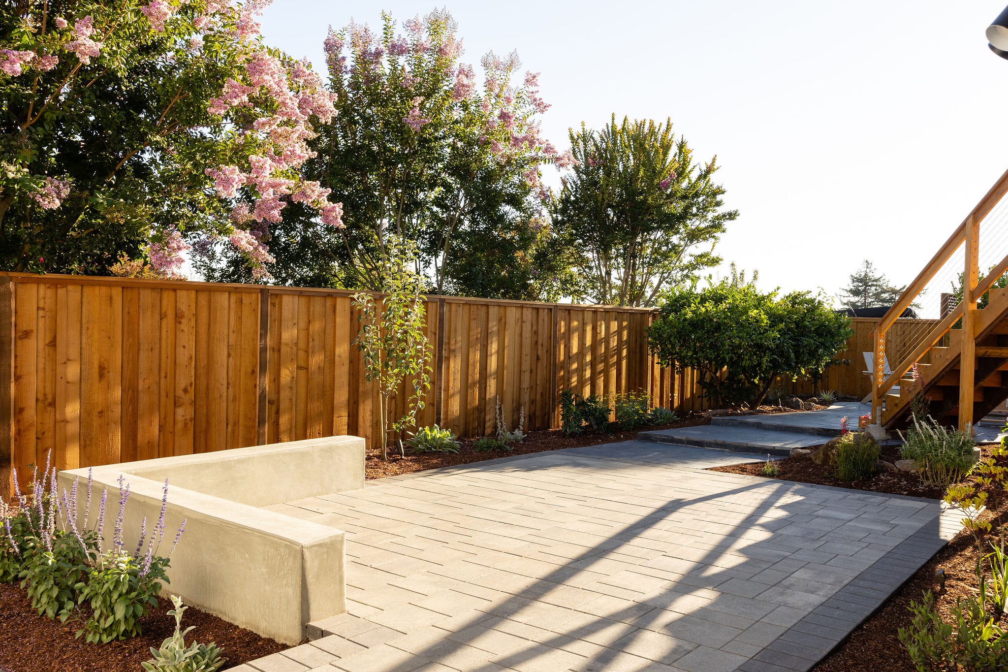 This Castro Valley landscape design showcases our expertise in perimeter landscaping and privacy solutions. The backyard transformation features custom fencing with integrated planting borders and comprehensive greenery throughout the outdoor living space.