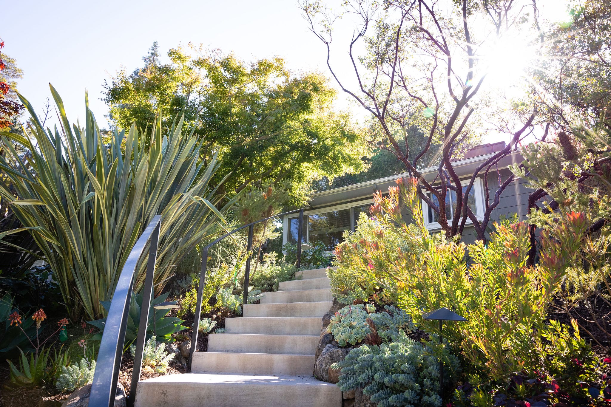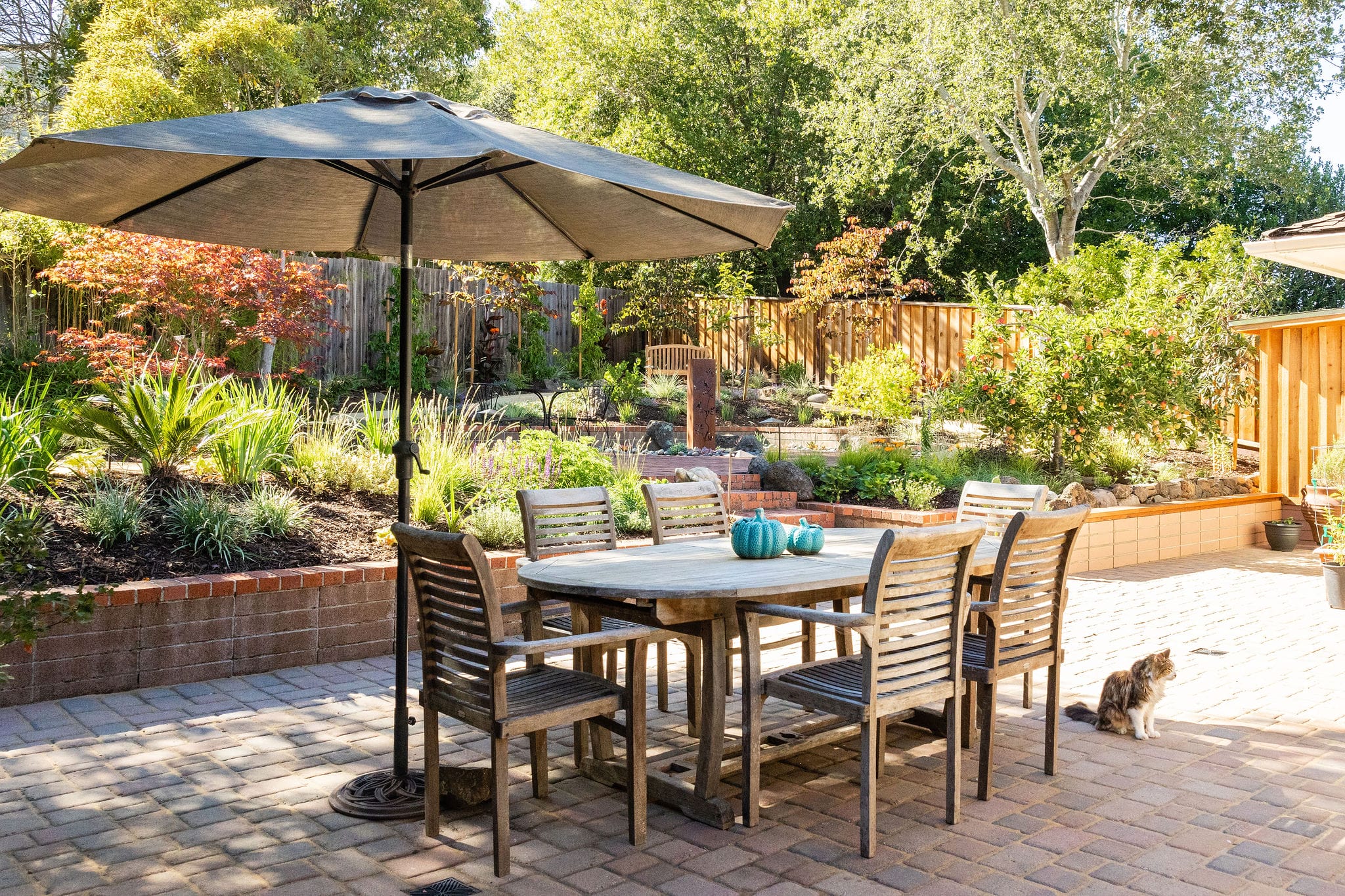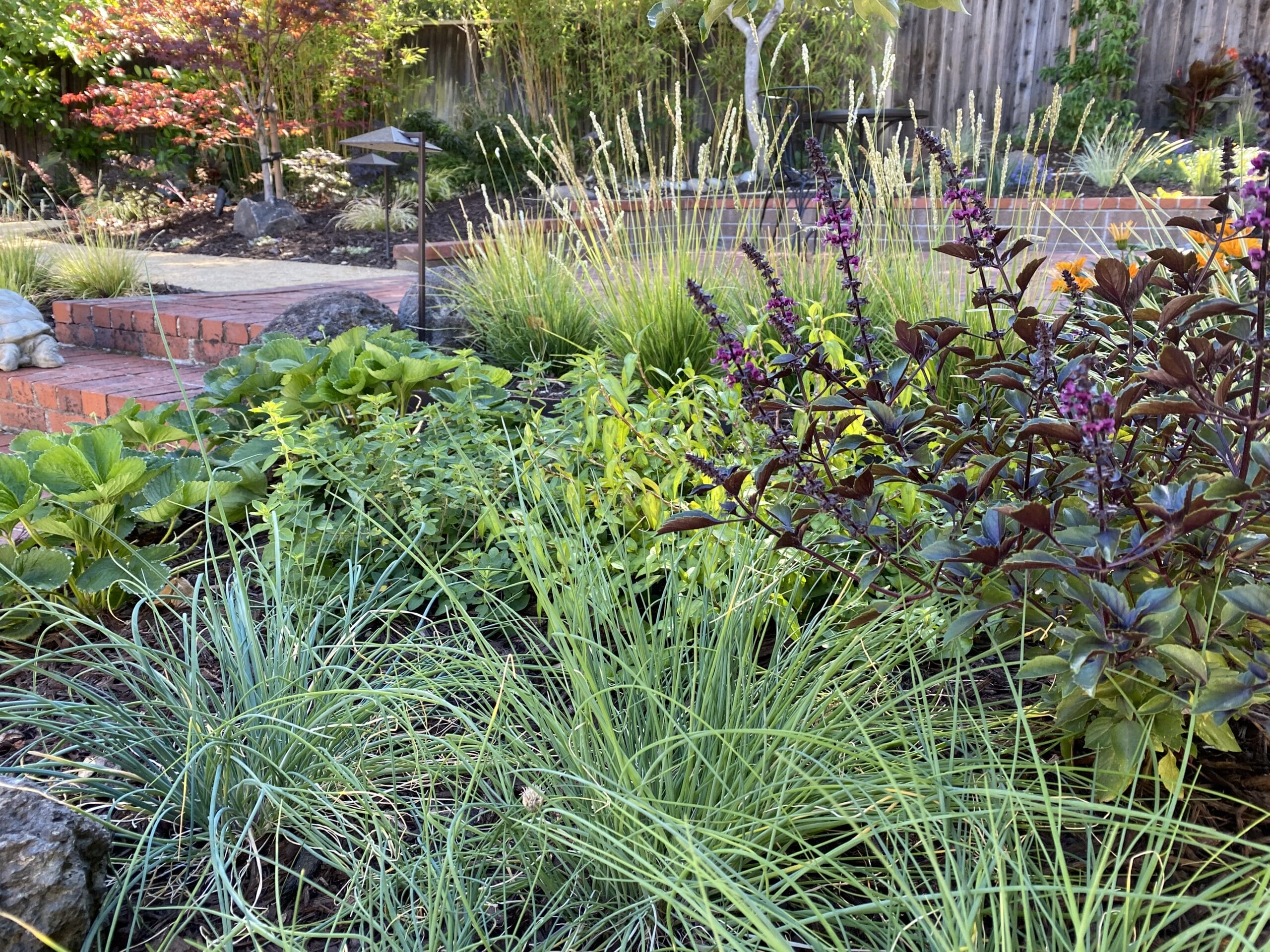 This Montclair backyard landscape design showcases our expertise in creating immersive garden experiences and circulation flow. The winding trail transformation features a thoughtfully placed bench destination surrounded by layered plantings and decorative elements.