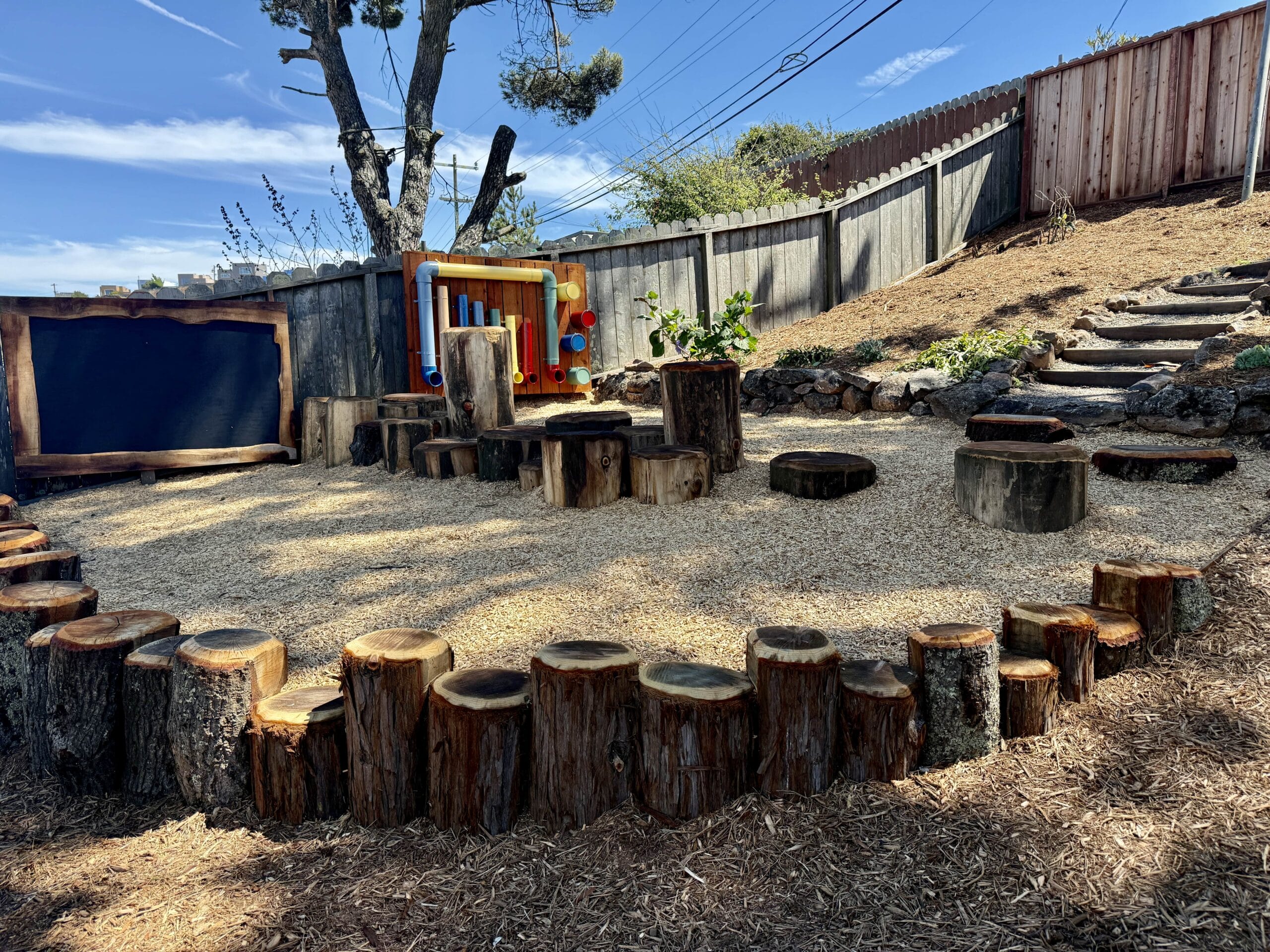 This Oakland Rockridge landscape design showcases our expertise in intimate gathering spaces and urban backyard retreats. The cozy transformation features a custom fire pit, comfortable seating arrangement with beach chairs and cement bench, surrounded by exceptional landscaping design.